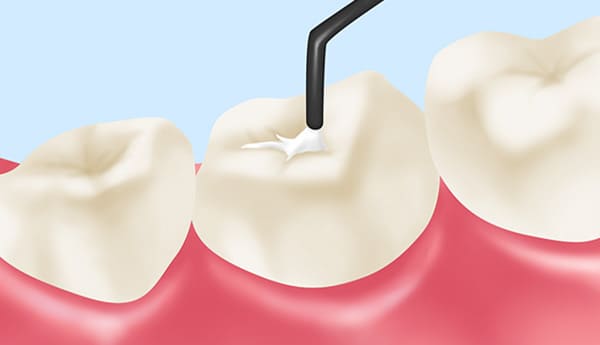 奥歯の溝にシーラントを施すことで、食べかすが残りやすい部分をあらかじめカバーします。当院でも多く行われる予防処置で、特に生えたばかりの永久歯を虫歯から守る効果があります。削ることなく行えるため、お子さまにも負担の少ない処置です。
