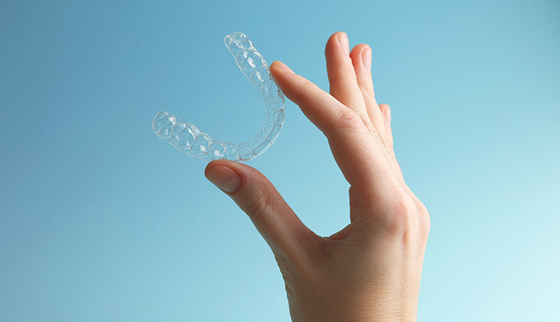 クリアアライナーは、インビザライン*同様、透明なマウスピースを用いた矯正治療のことです。一人ひとりの患者さまに合わせてカスタムオーダーで製造した装置で、定期的な歯型採りを行って調整した装置を継続して装着することで歯並びを整えます。