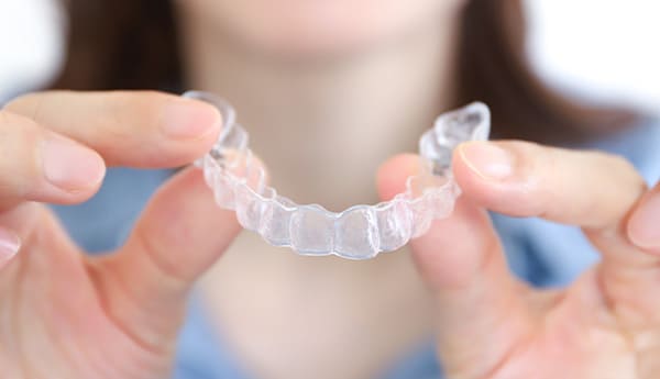インビザライン*は、透明なマウスピースのような矯正装置のことです。一人ひとりの患者さまに合わせてカスタムオーダーで製造した「アライナー」と呼ばれる装置を装着し、治療の進行状況に合わせて1.5~3ヶ月ごとに新しいアライナーに付け替えていきます。